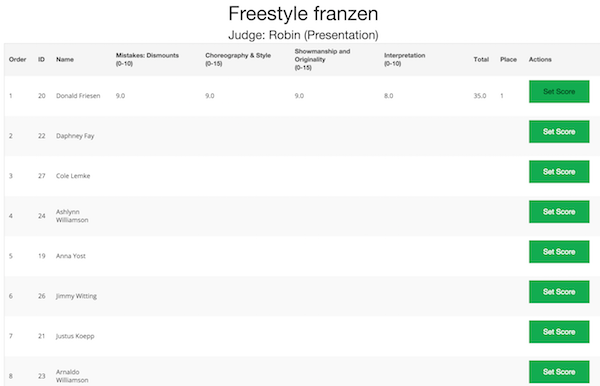 • Scoring of the results according to the IUF rules (IUF 2015 Freestyle, or < 2015 rules)